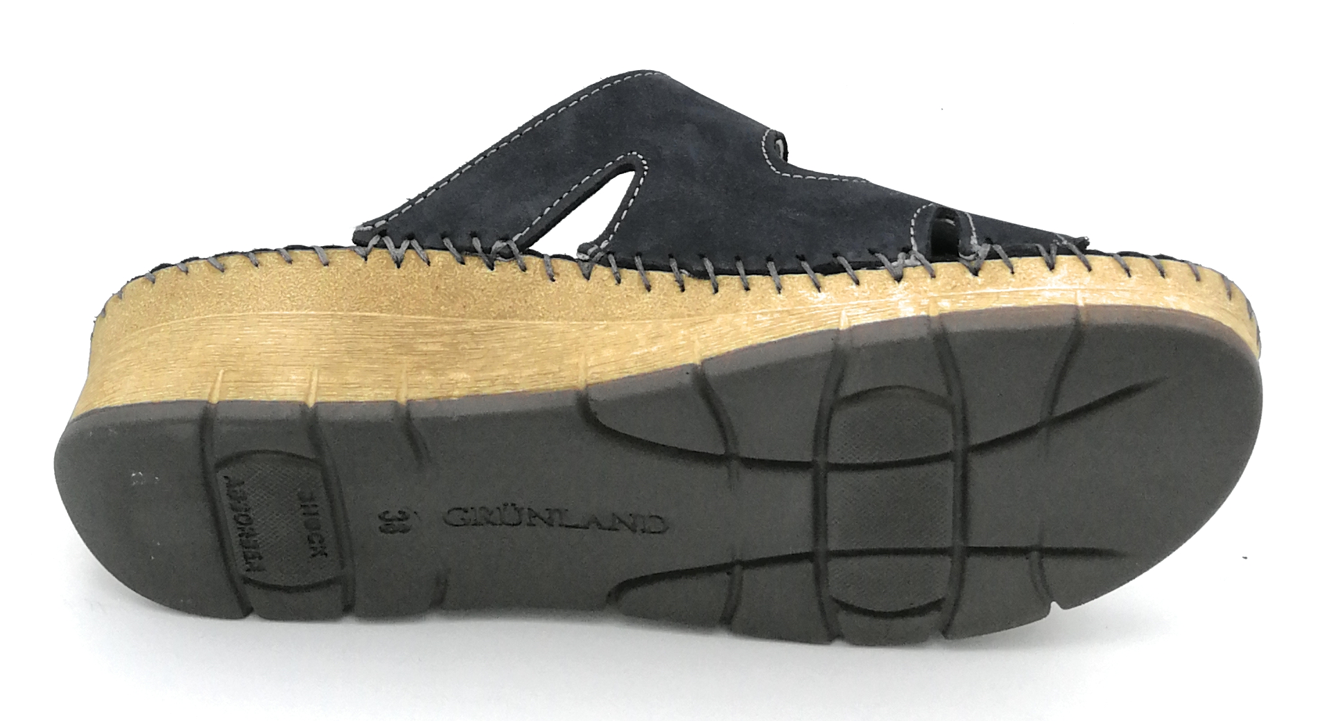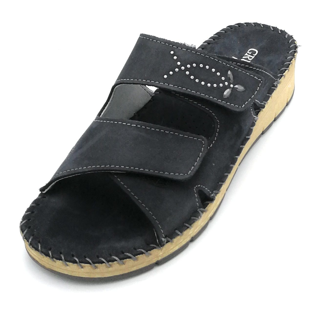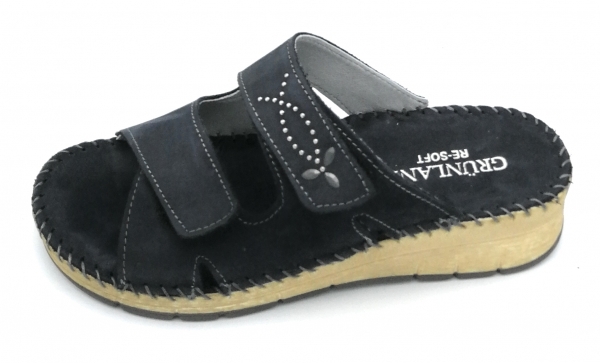 Queste calzature sono prodotte con pellami di primissima scelta,completamente lavorati, colorati e rifiniti a mano con metodi artigianali. Marca: Grunland CI3613 Modello: ciabatta doppio strap-on fondo gomma Colore: blu Materiale: nabuk Prezzo Di Listino: € 65,00 tabella misure