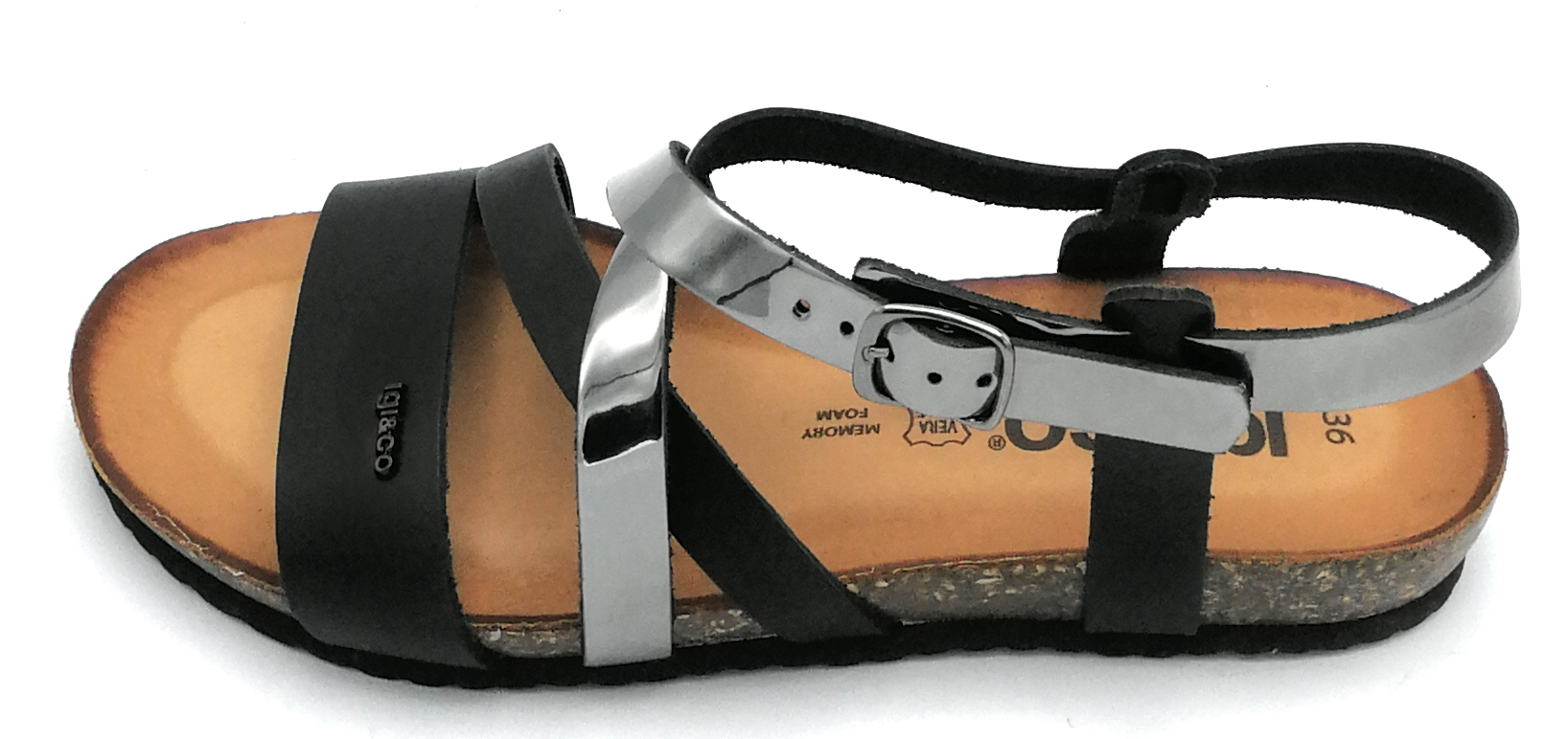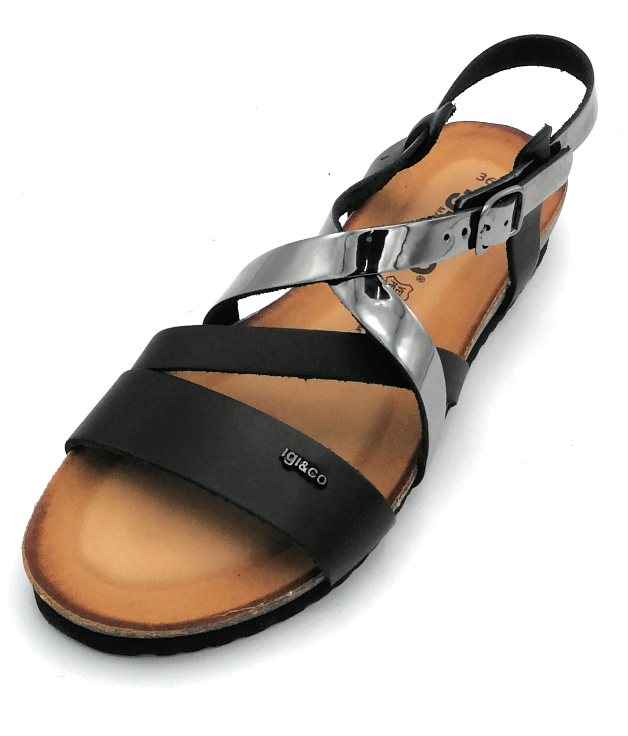 Queste calzature sono prodotte con pellami di primissima scelta,completamente lavorati, colorati e rifiniti a mano con metodi artigianali. Marca: Igi & Co 5695700 Modello: sandalo cinturino fondo gomma Colore: peltro-nero Materiale: laminato-pelle Prezzo Di Listino: € 54,90 tabella misure