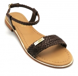 Les Tropeziennes Hippy sandalo pelle intrecciata castagna ci